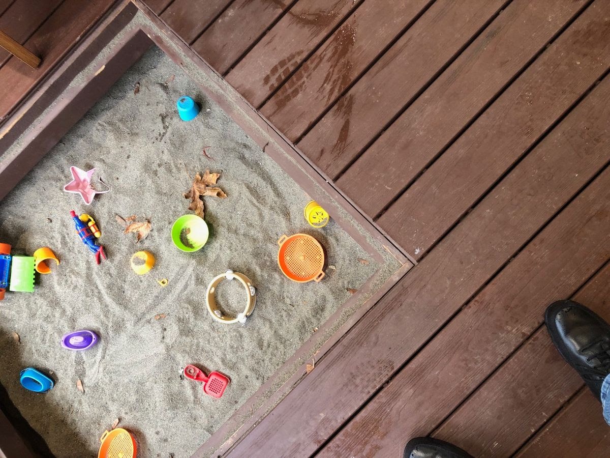 Built-in sandbox for the children to play even on those rainy days.